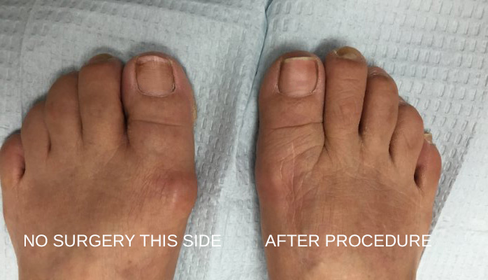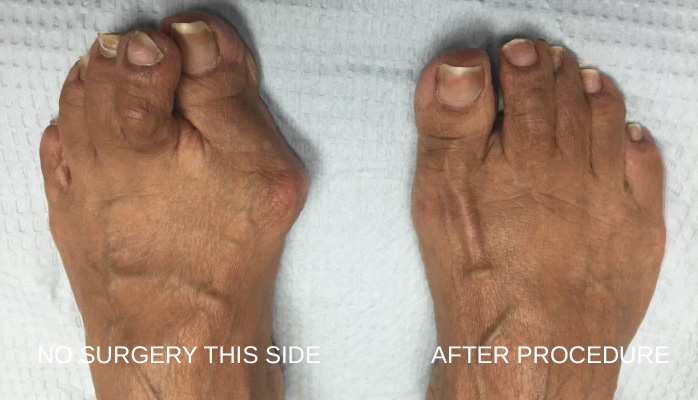 Additionally the foot surgery techniques and equipment continue to advance to where these patients have less post-operative pain and are able to go back into shoes as early as 4 weeks. We used a non metallic pin (biologic bone material - TenFUSE) to fix the osteotomy (or surgical fracture) and stabilize the correction after it was shifted to a more normal position.